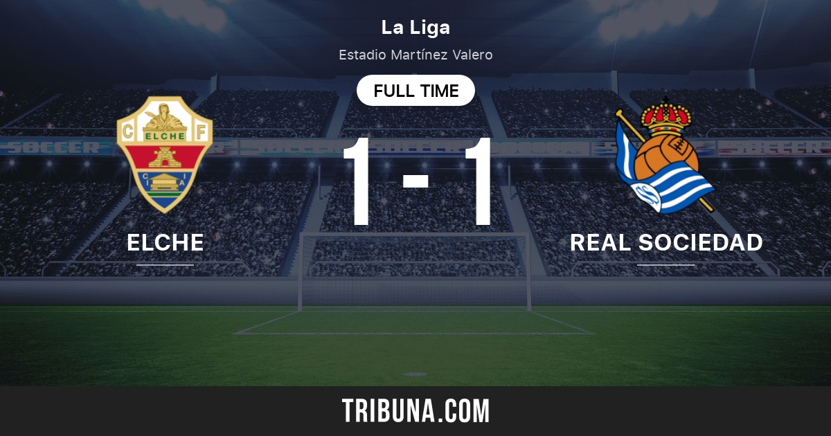 H2H Real Sociedad vs Elche. They are three points behind the league leader Real Madrid. Click on the graph button to view the match statistics such as team line-ups substitutions goalscorers yellow and red cards.